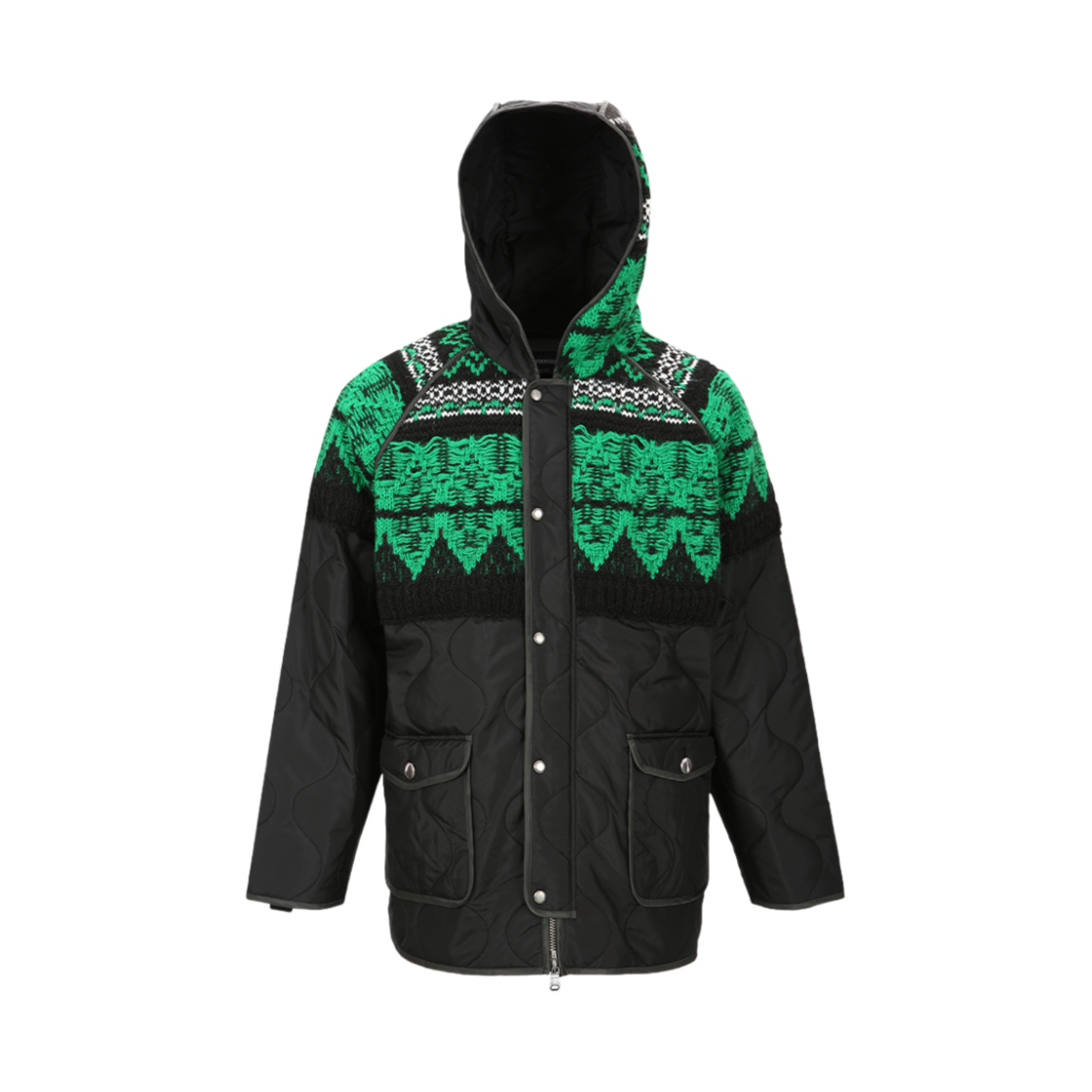 ADSB 앤더슨벨 유니섹스 노르딕 니트 패치 퀼티드 파카 블랙