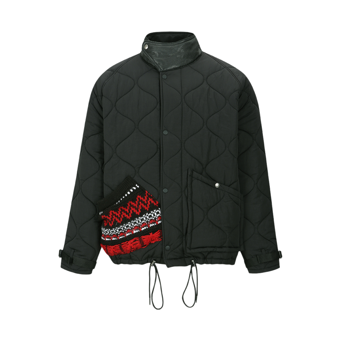 ADSB 앤더슨벨 뉴 노르딕 니트 패치 퀼티드 숏 파카 블랙