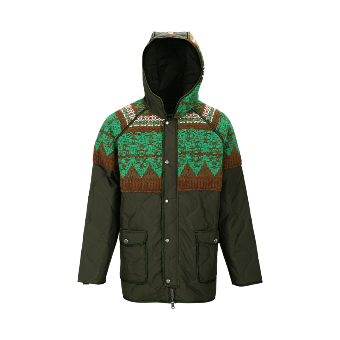 ADSB 앤더슨벨 유니섹스 노르딕 니트 패치 퀼티드 파카 카키