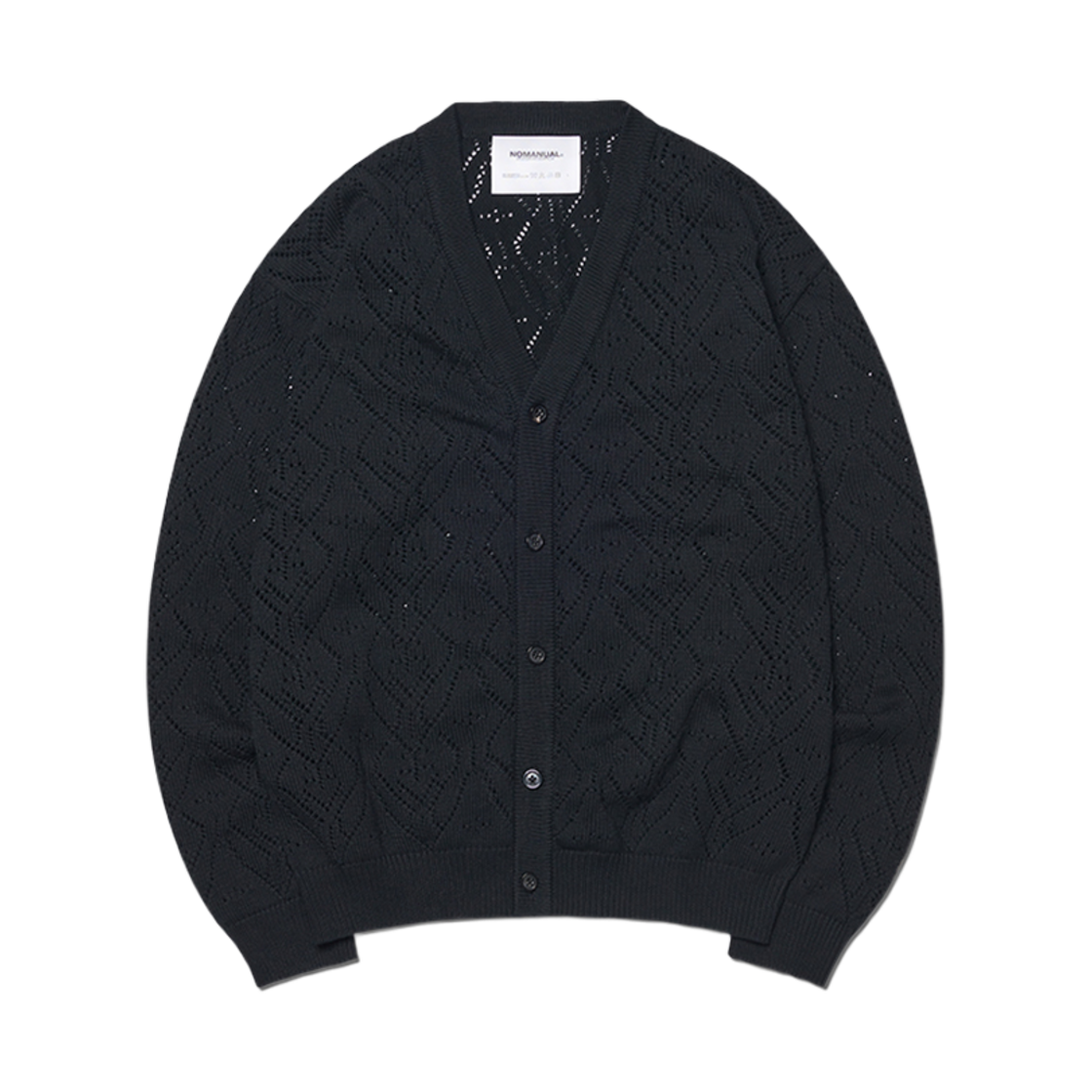 노매뉴얼 T.B 펀칭 니트 가디건 블랙