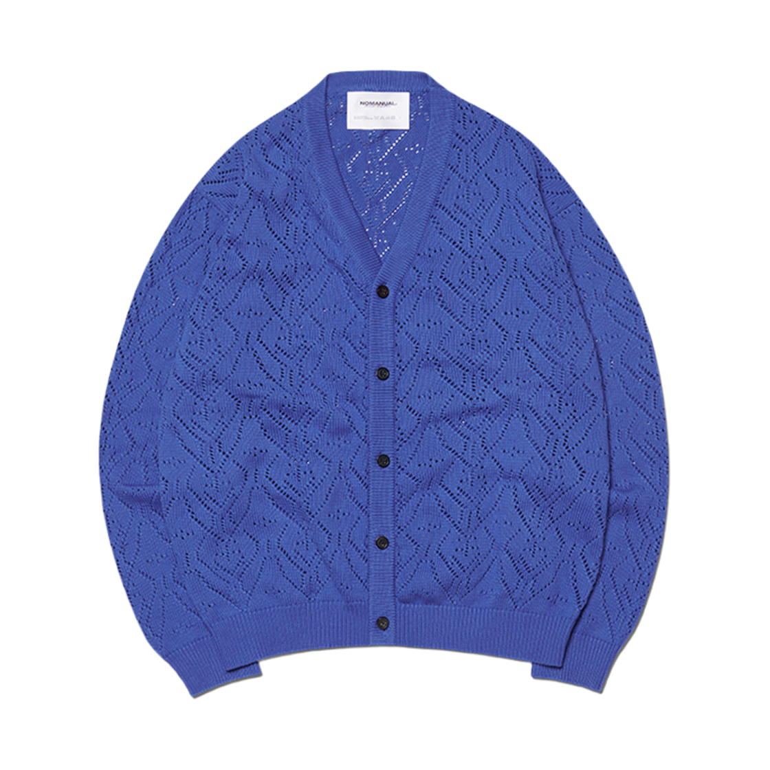 노매뉴얼 T.B 펀칭 니트 가디건 라이트 네이비