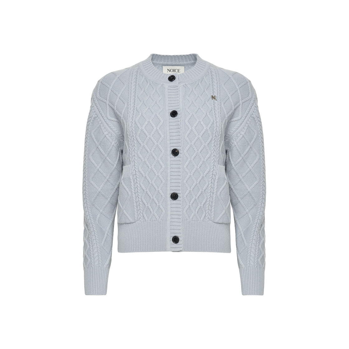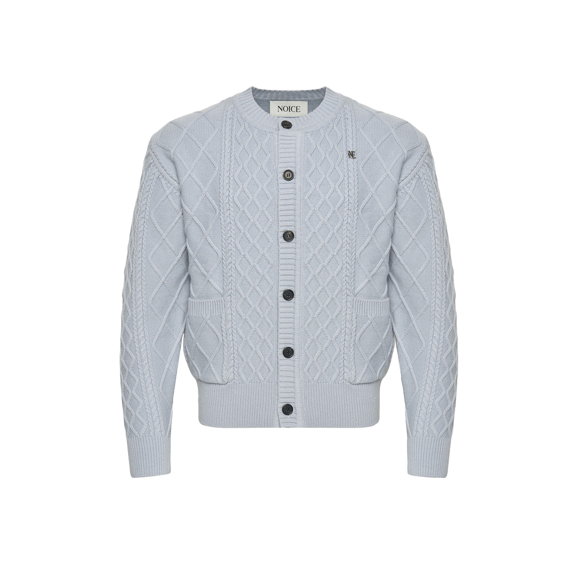 노이스 울 로고 케이블 니트 가디건 스카이