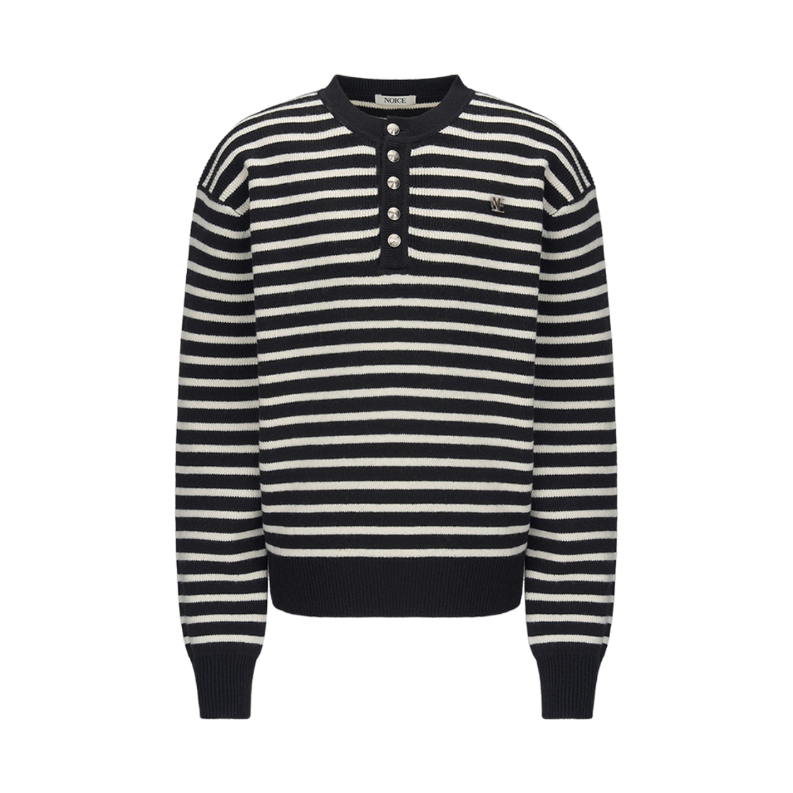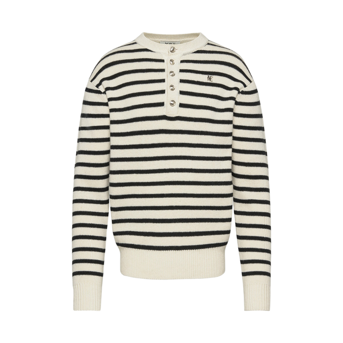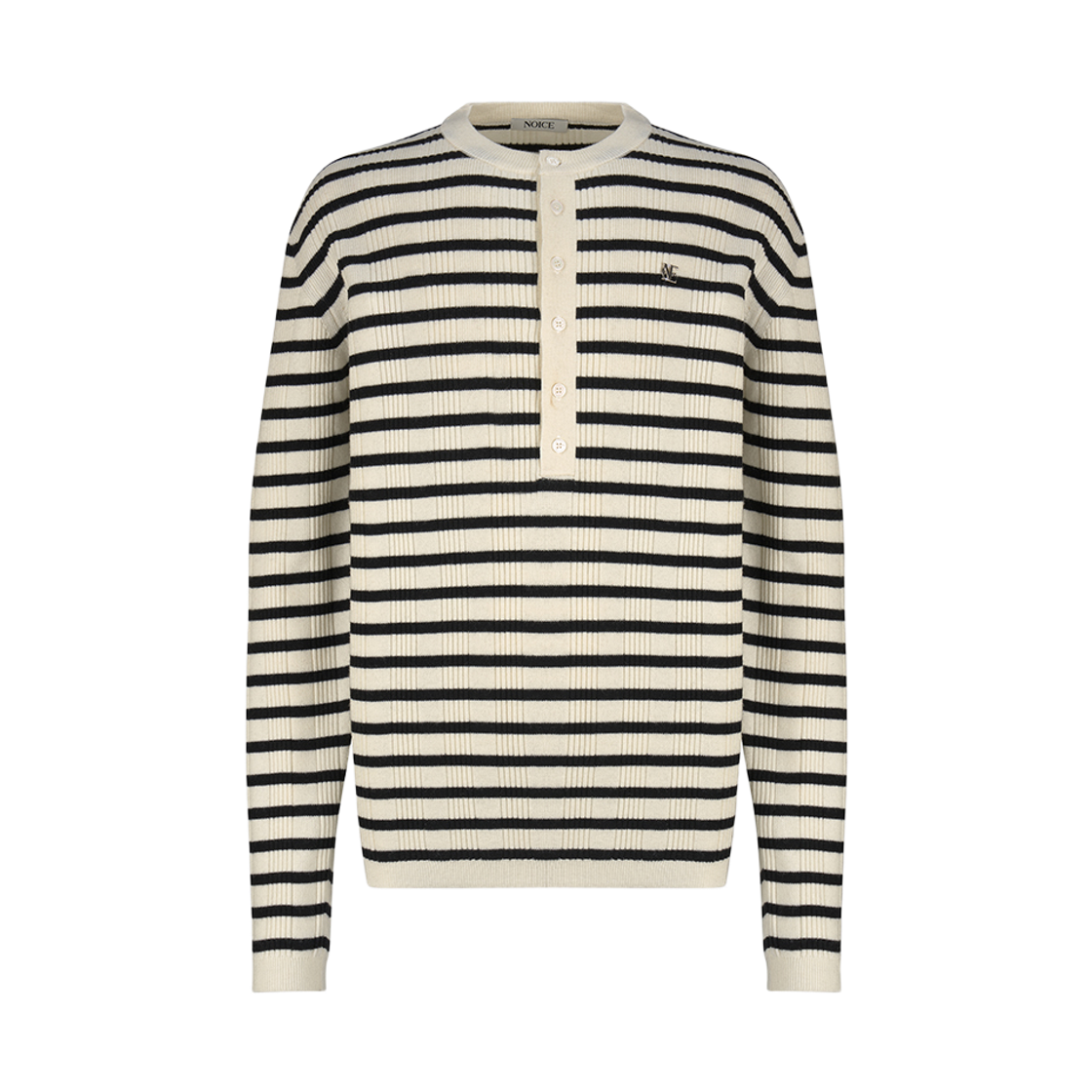 노이스 메리노 리브 헨리넥 니트 탑 스트라이프