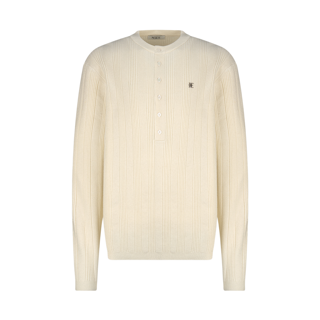 노이스 메리노 리브 헨리넥 니트 탑 아이보리