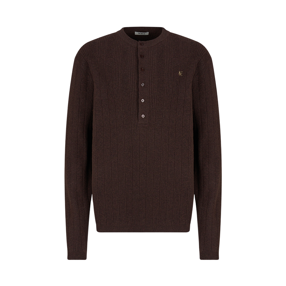노이스 메리노 리브 헨리넥 니트 탑 브라운