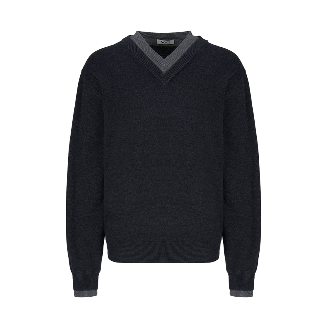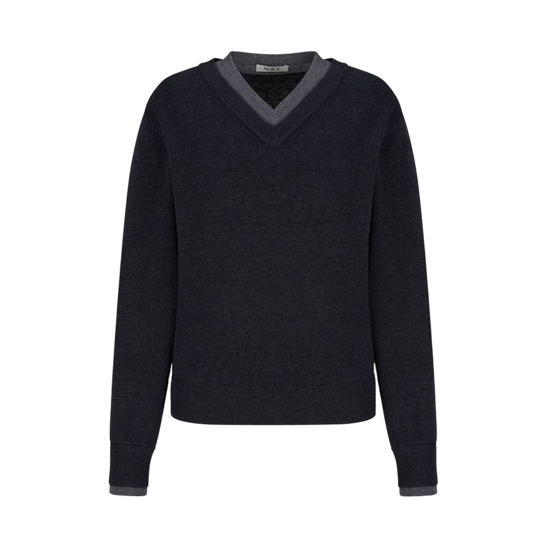 (W) 노이스 레이어드 V넥 메리노 니트 탑 차콜