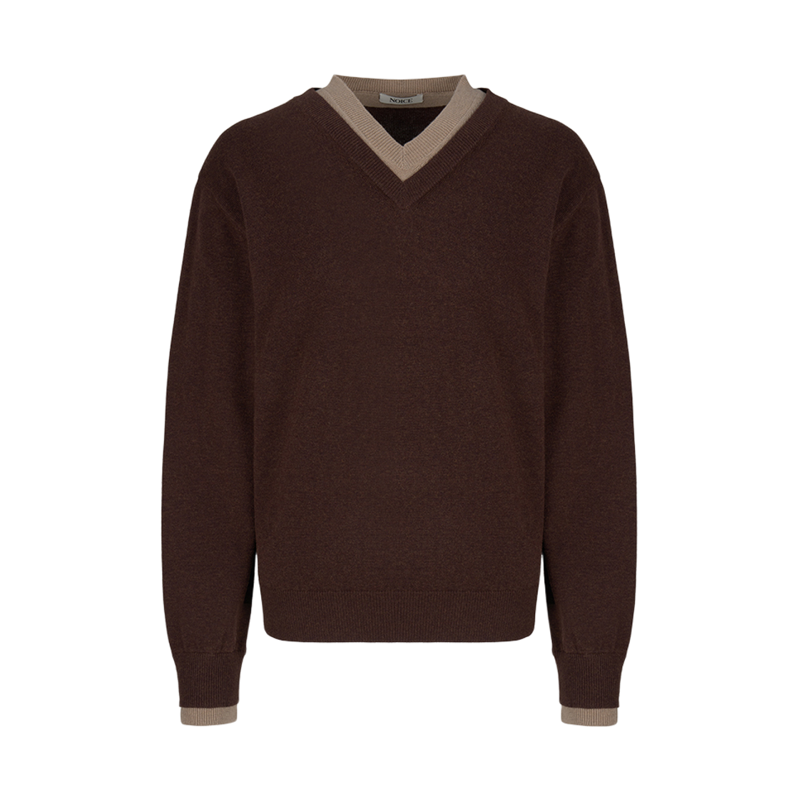 노이스 레이어드 V넥 메리노 니트 탑 브라운