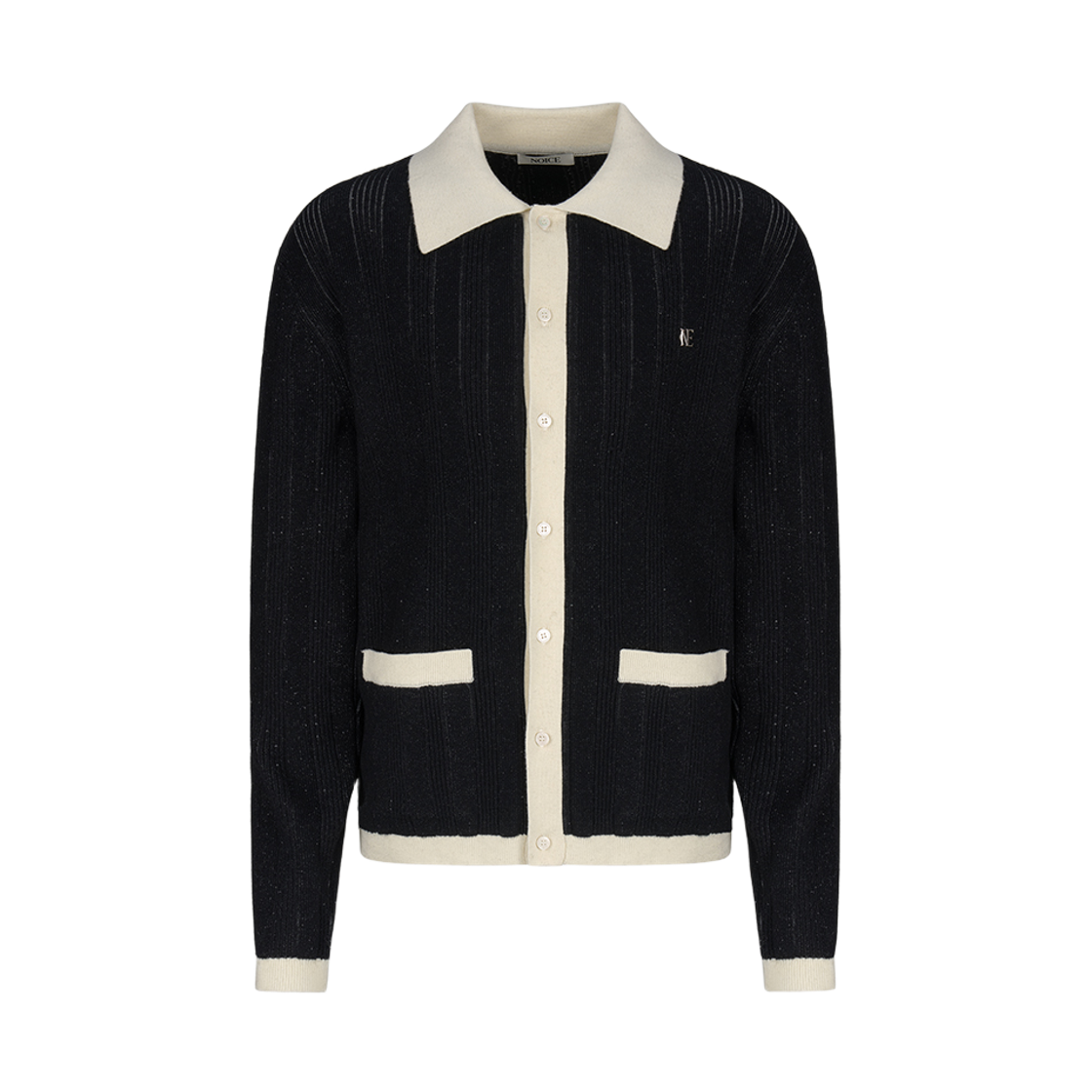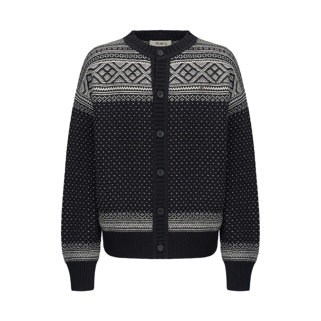 노이스 블락 메리노 블렌드 니트 가디건 블랙 & 화이트