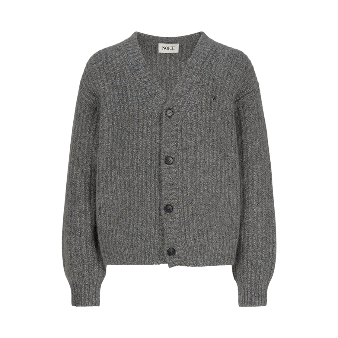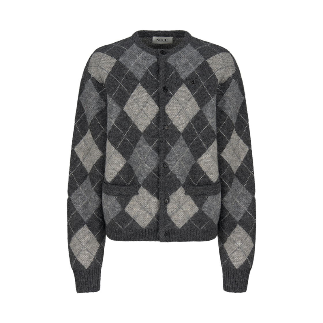 (W) 노이스 아가일 모헤어 니트 가디건 그레이