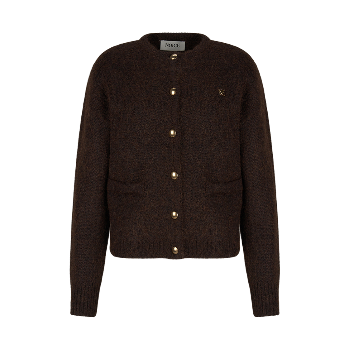 (W) 노이스 아가일 모헤어 니트 가디건 브라운