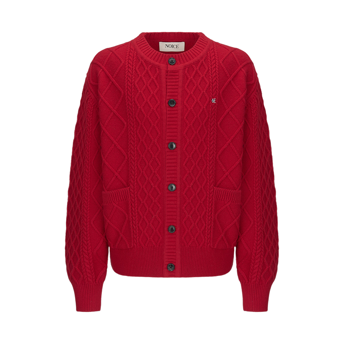 노이스 케이블 울 블렌드 니트 카디건 레드