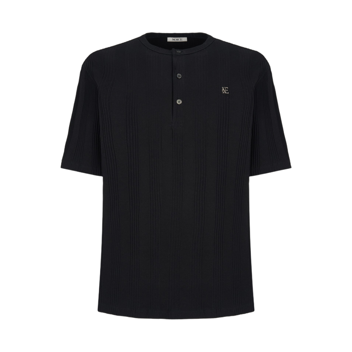 노이스 코튼 립 헨리넥 블랙