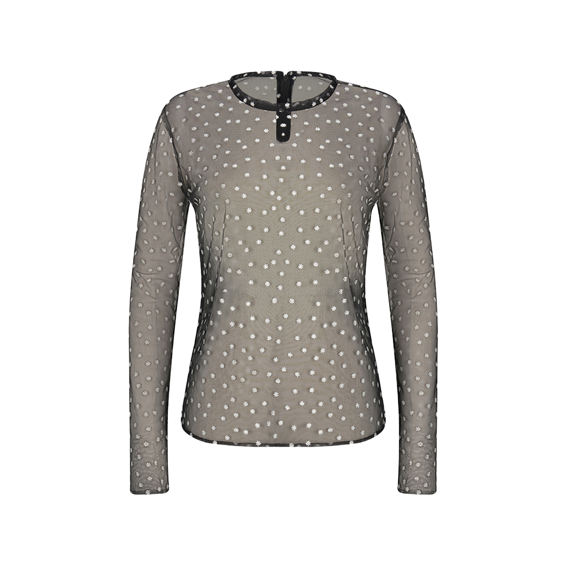 노이스 코튼 립 롱슬리브 헨리넥 블랙