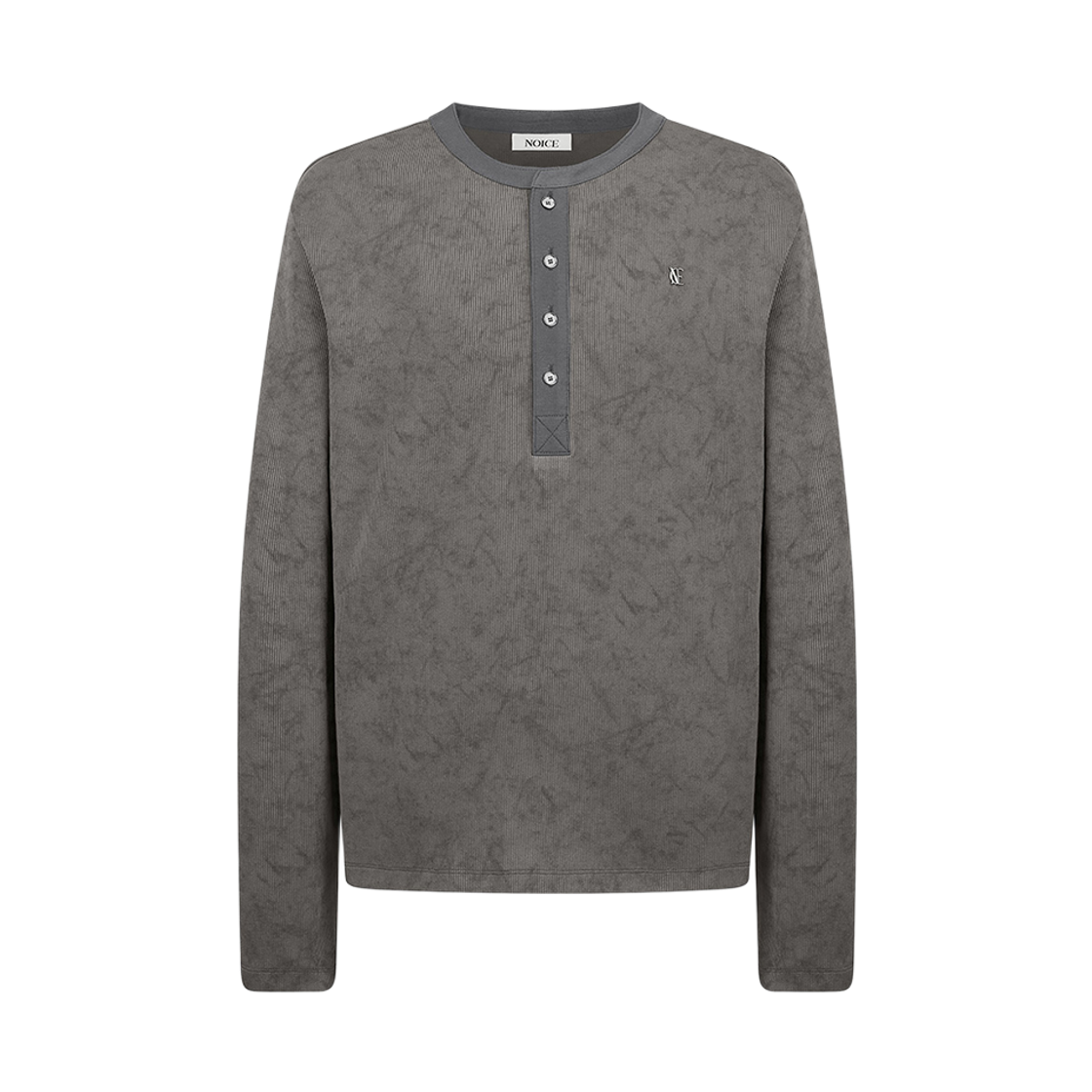 노이스 워시드 리브 헨리넥 티셔츠 그레이