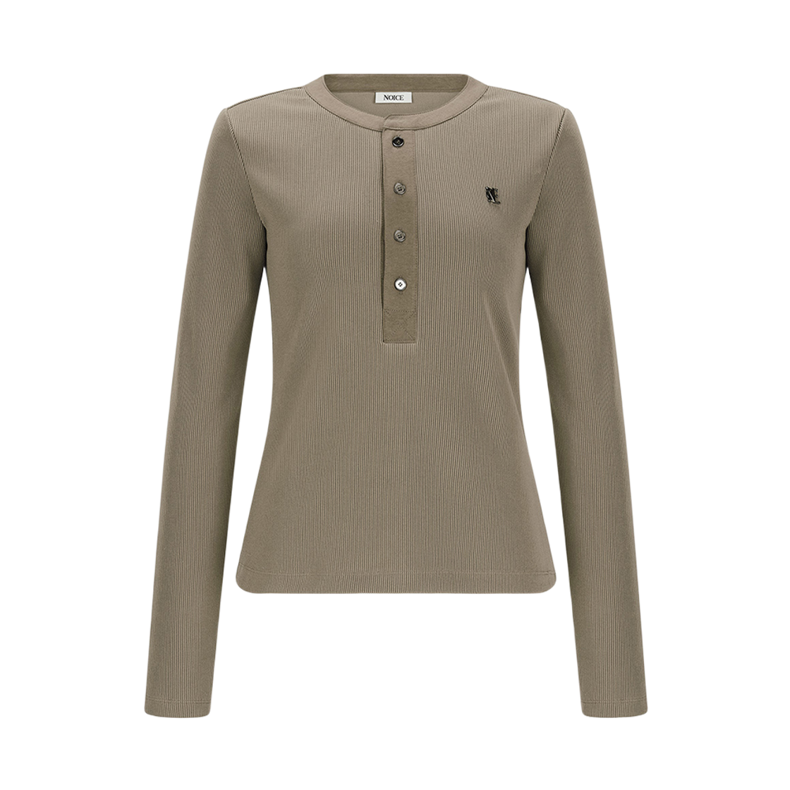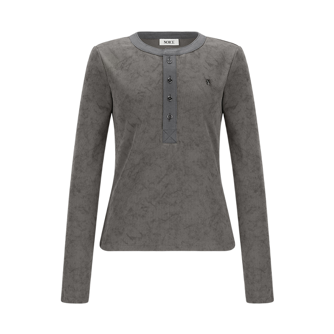 (W) 노이스 워시드 리브 헨리넥 티셔츠 그레이