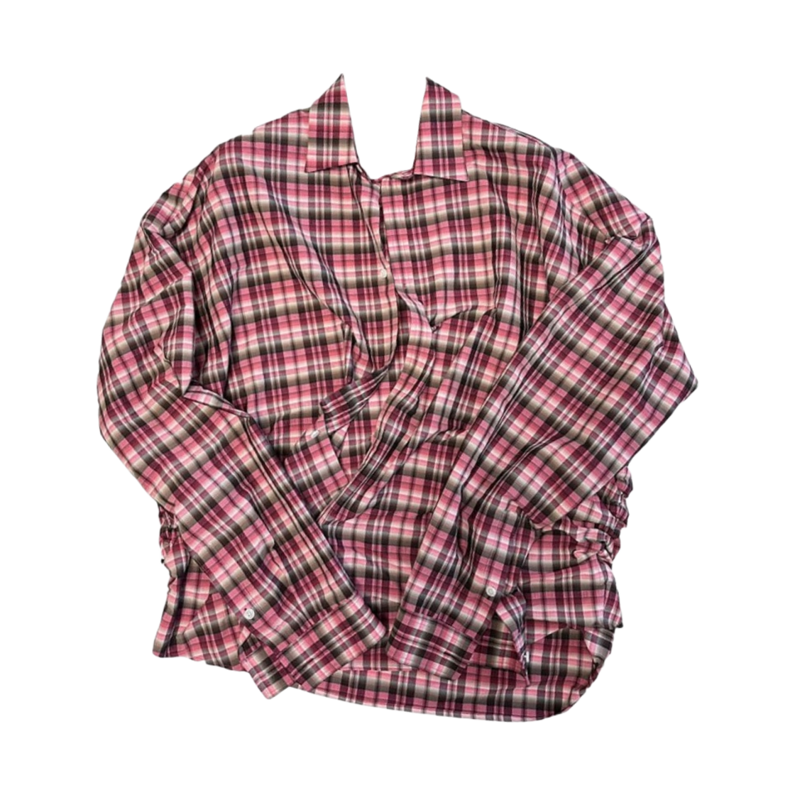 논노드 플렉서블 스트링 체크 셔츠 핑크