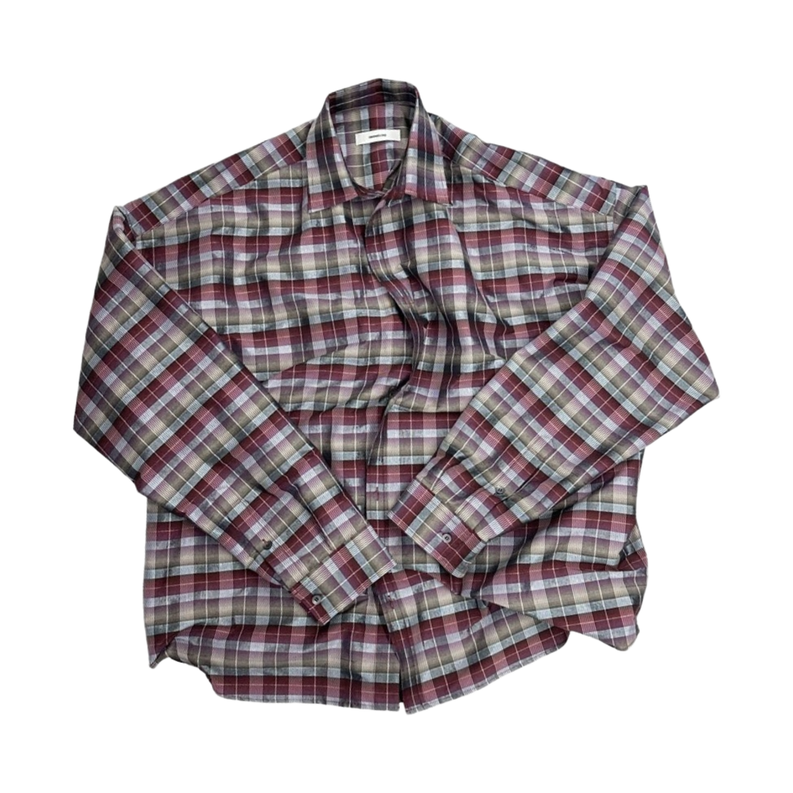 논노드 플렉서블 스트링 체크 셔츠 와인
