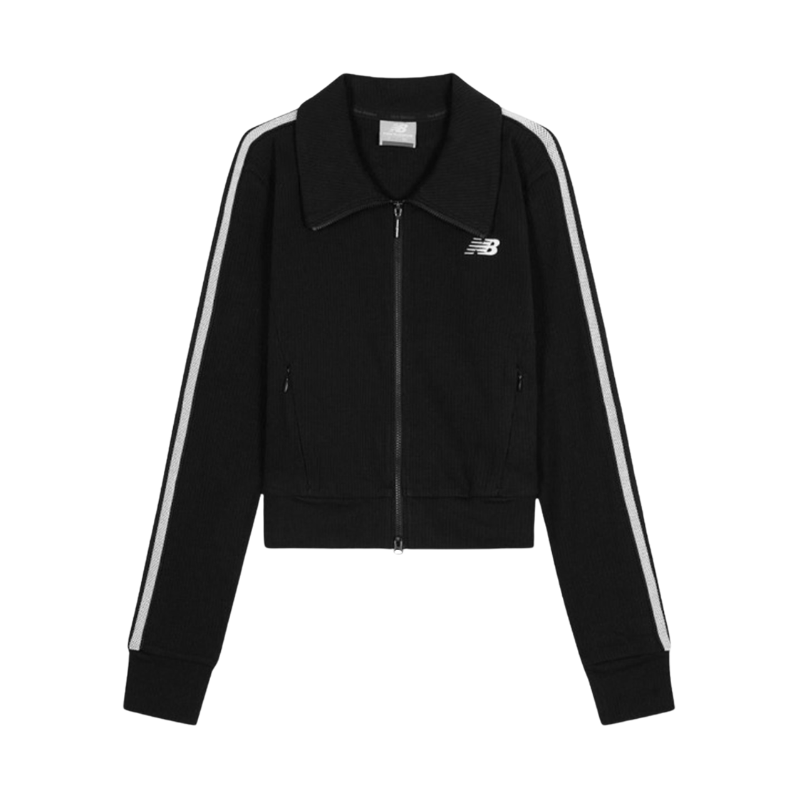 (W) 뉴발란스 슬림 핏 트랙 골지 집업 블랙
