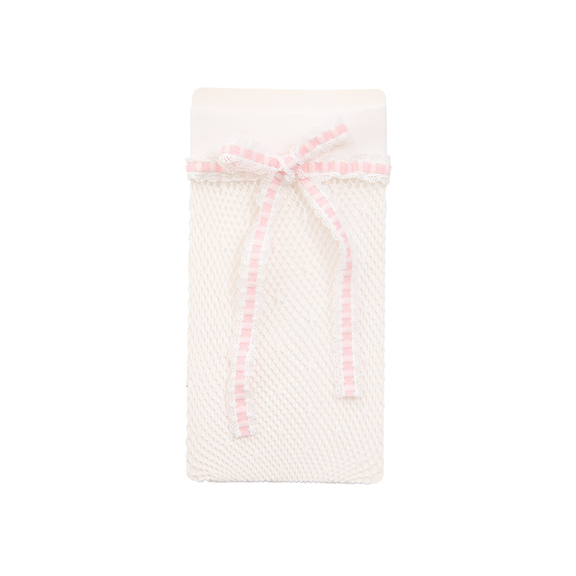 오니뗄라 리본 다이아 도트 피쉬넷 니삭스 화이트