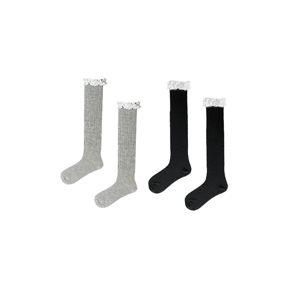 오니뗄라 레이스 미니 플라워 오버 니삭스 블랙