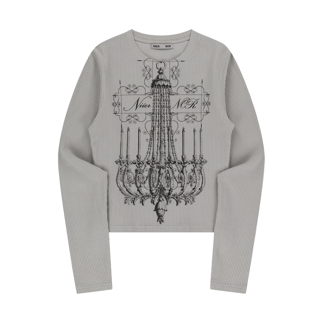 니어 노어 샹들리에 리브드 롱슬리브티 라이트 그레이