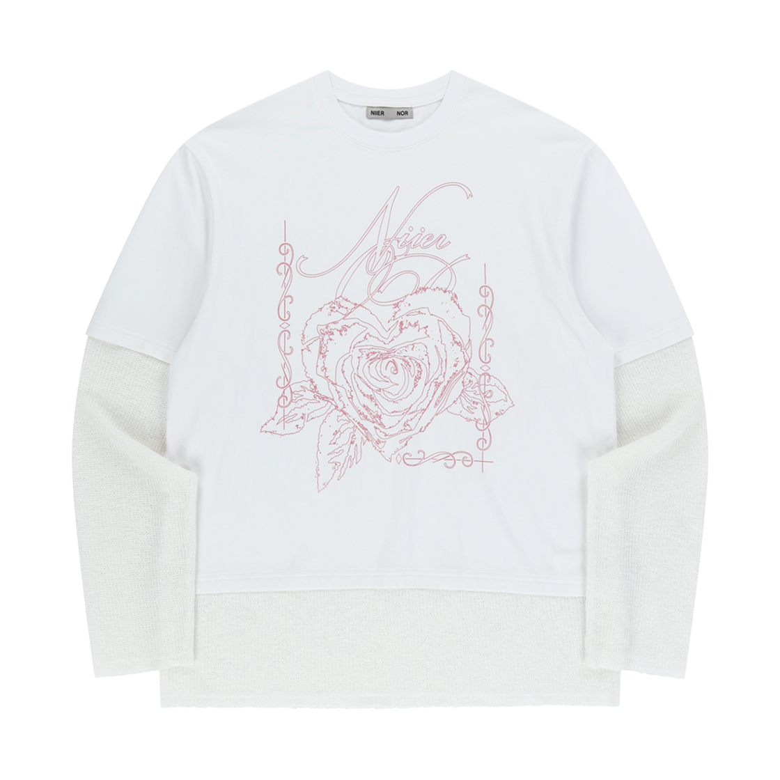 니어 노어 하트 로즈 레이어드 롱슬리브티 화이트