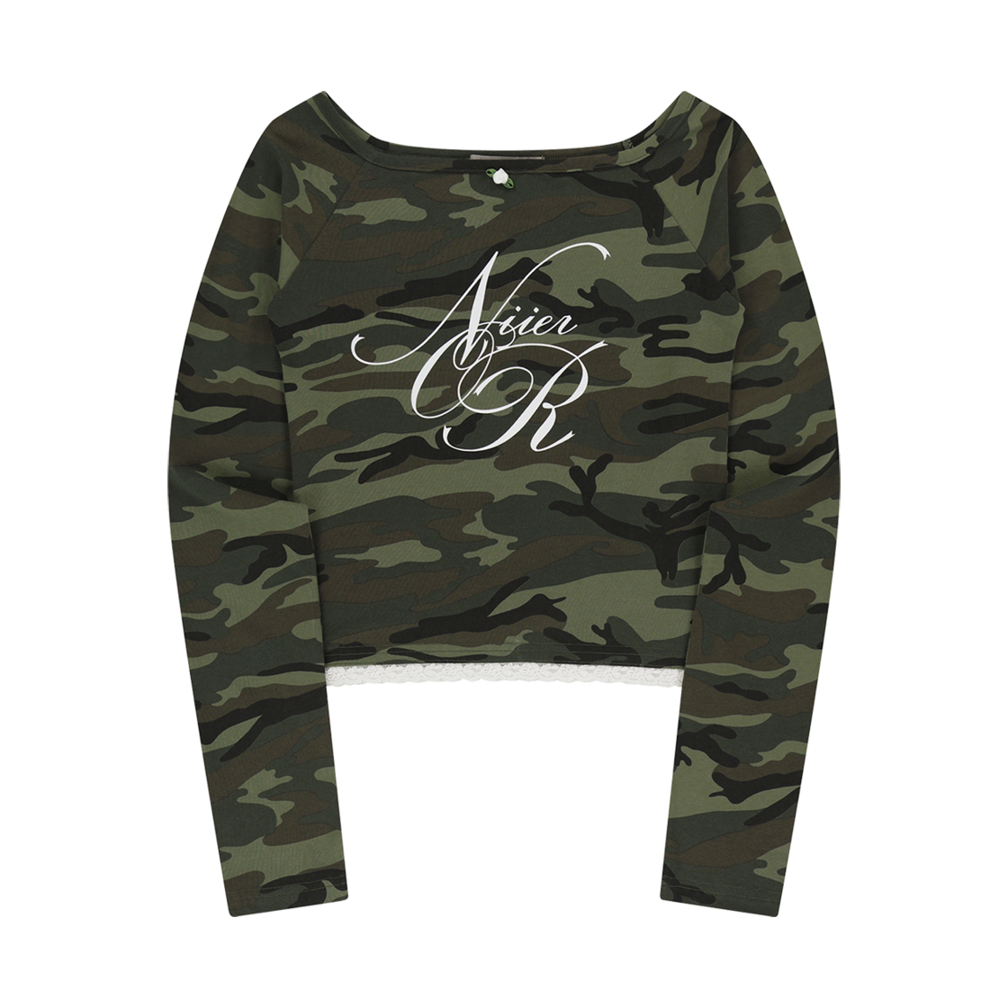 니어 노어 레이스 오프숄더 롱슬리브티 카모