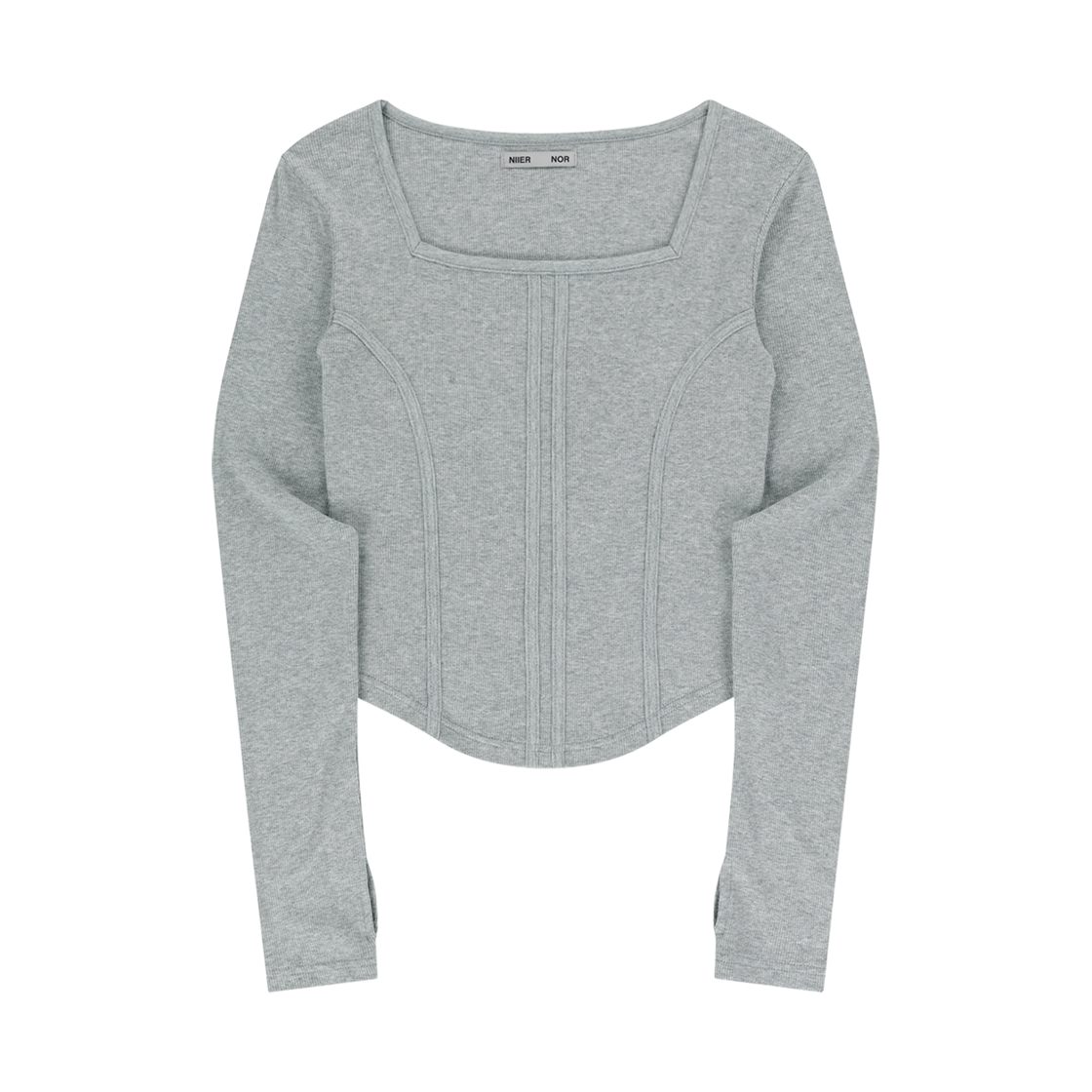 니어 노어 바인딩 슬림 롱슬리브티 멜란지 그레이