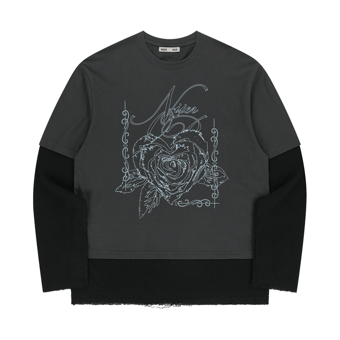 니어 노어 하트 로즈 레이어드 롱슬리브티 차콜