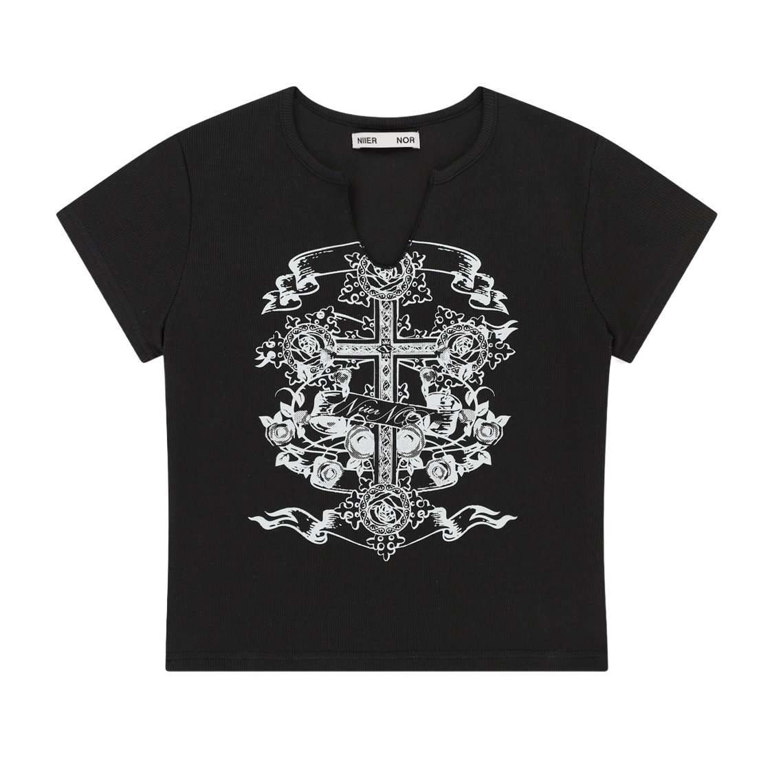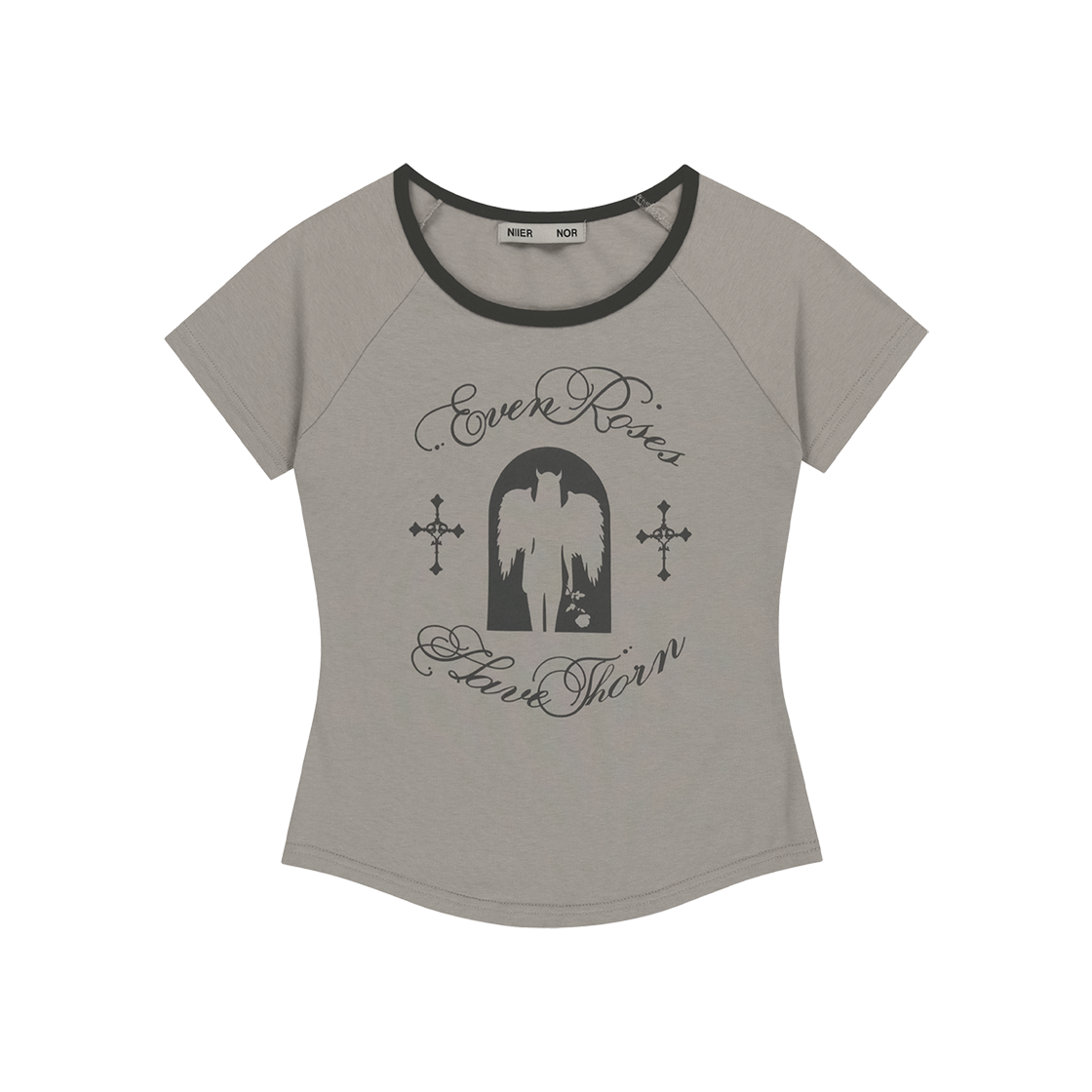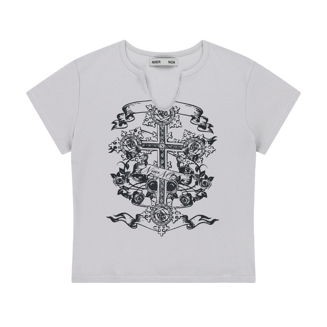 니어 노어 크로스 로즈 래글런 티 아이보리
