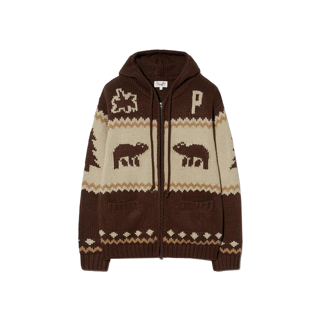 피지컬 디파트먼트 베어 투웨이 노르딕 니트 후드집업 브라운