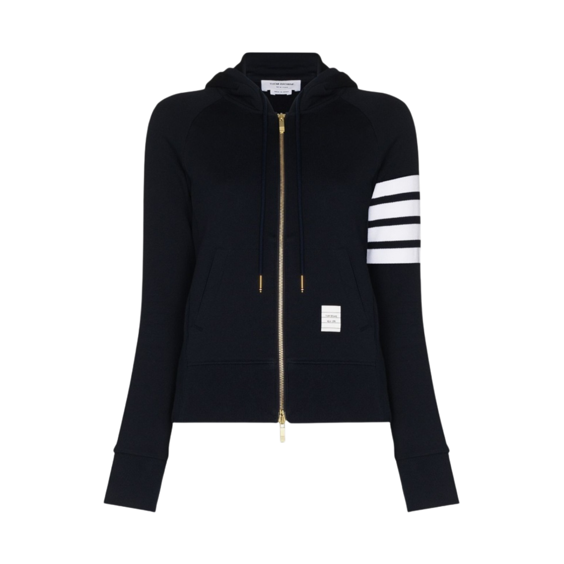 (W) 톰브라운 루프백 저지 니트 엔지니어드 사선 스트라이프 집업 후드 네이비