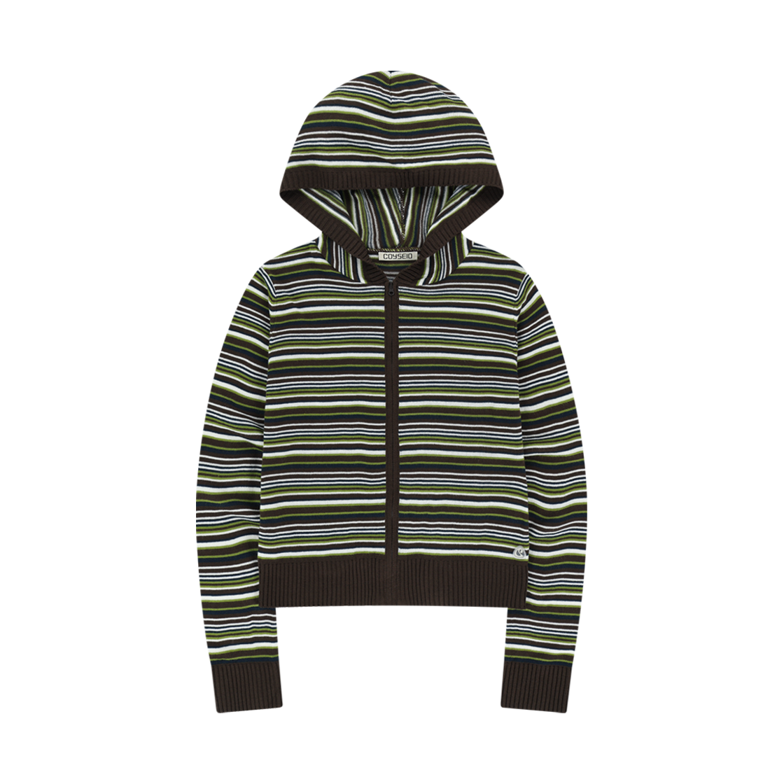 더바이닐하우스 스트라이프 니트 후드 집업 차콜