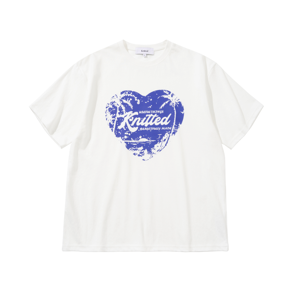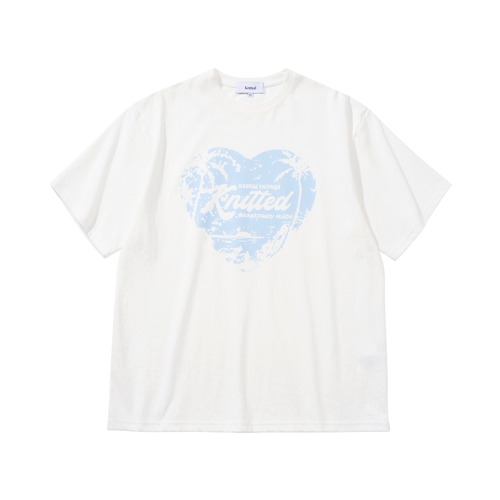 니티드 팜트리 하트 티셔츠 화이트-스카이