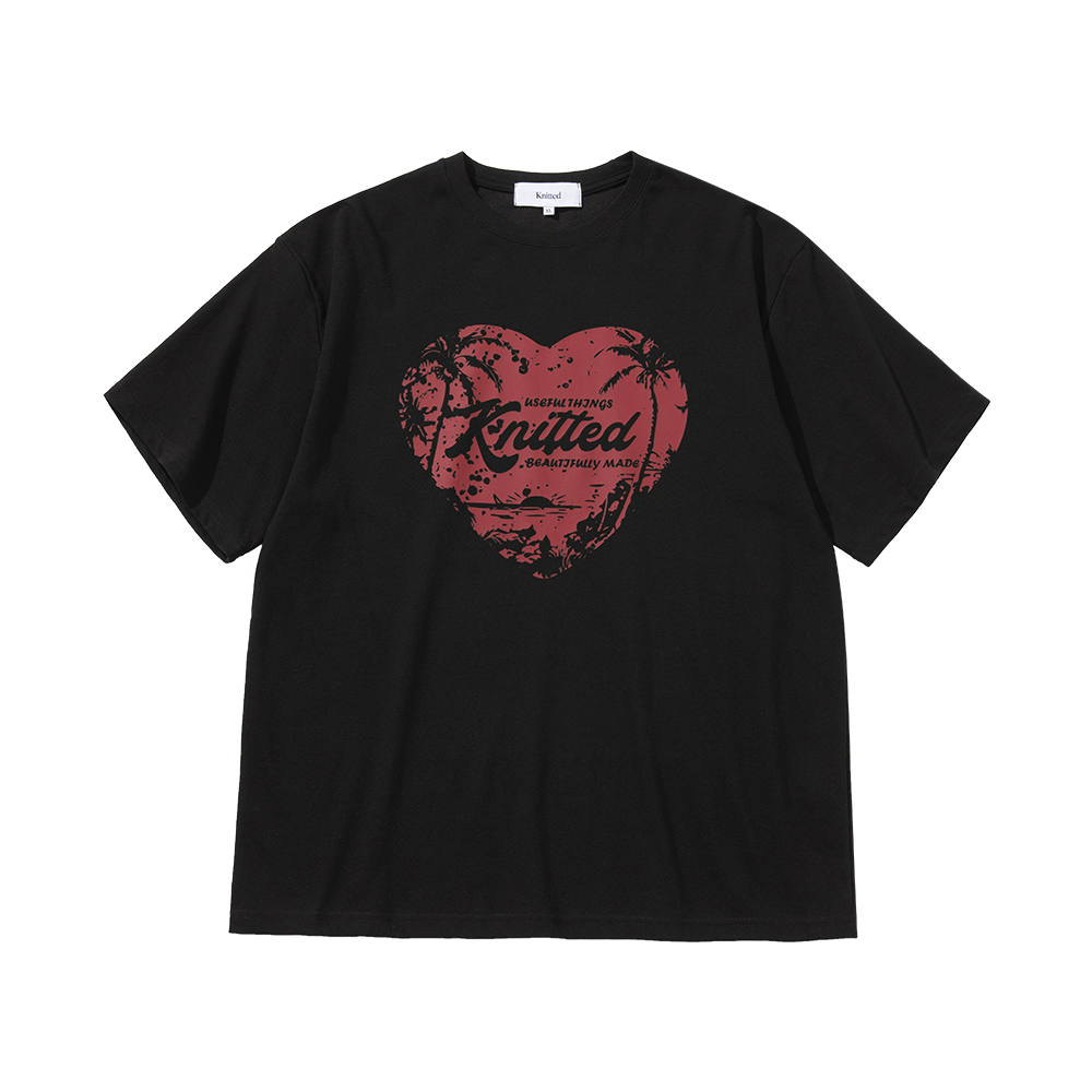 니티드 팜트리 하트 티셔츠 블랙-레드