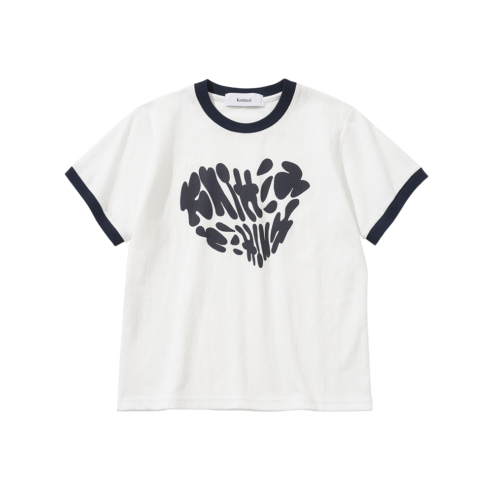 니티드 여성 하트 로고 링거 티셔츠 화이트
