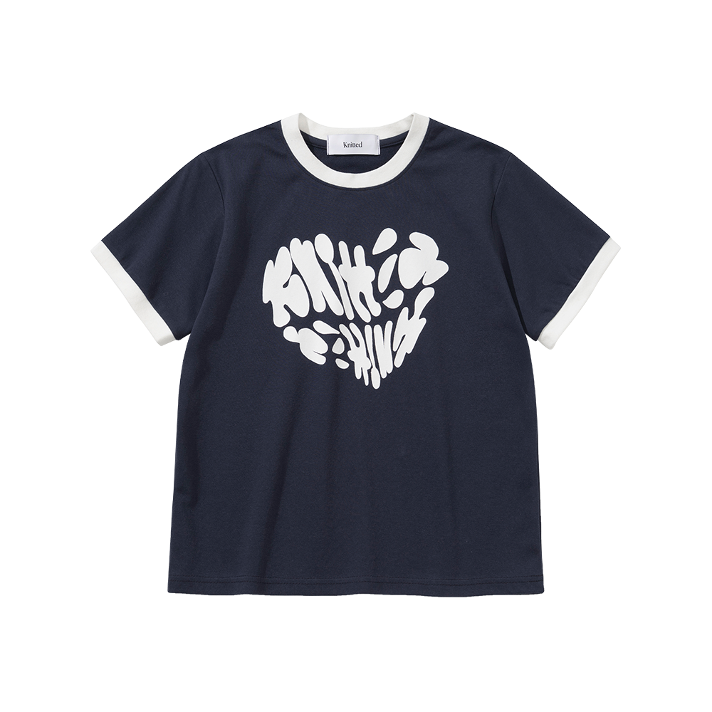니티드 여성 하트 로고 링거 티셔츠 네이비