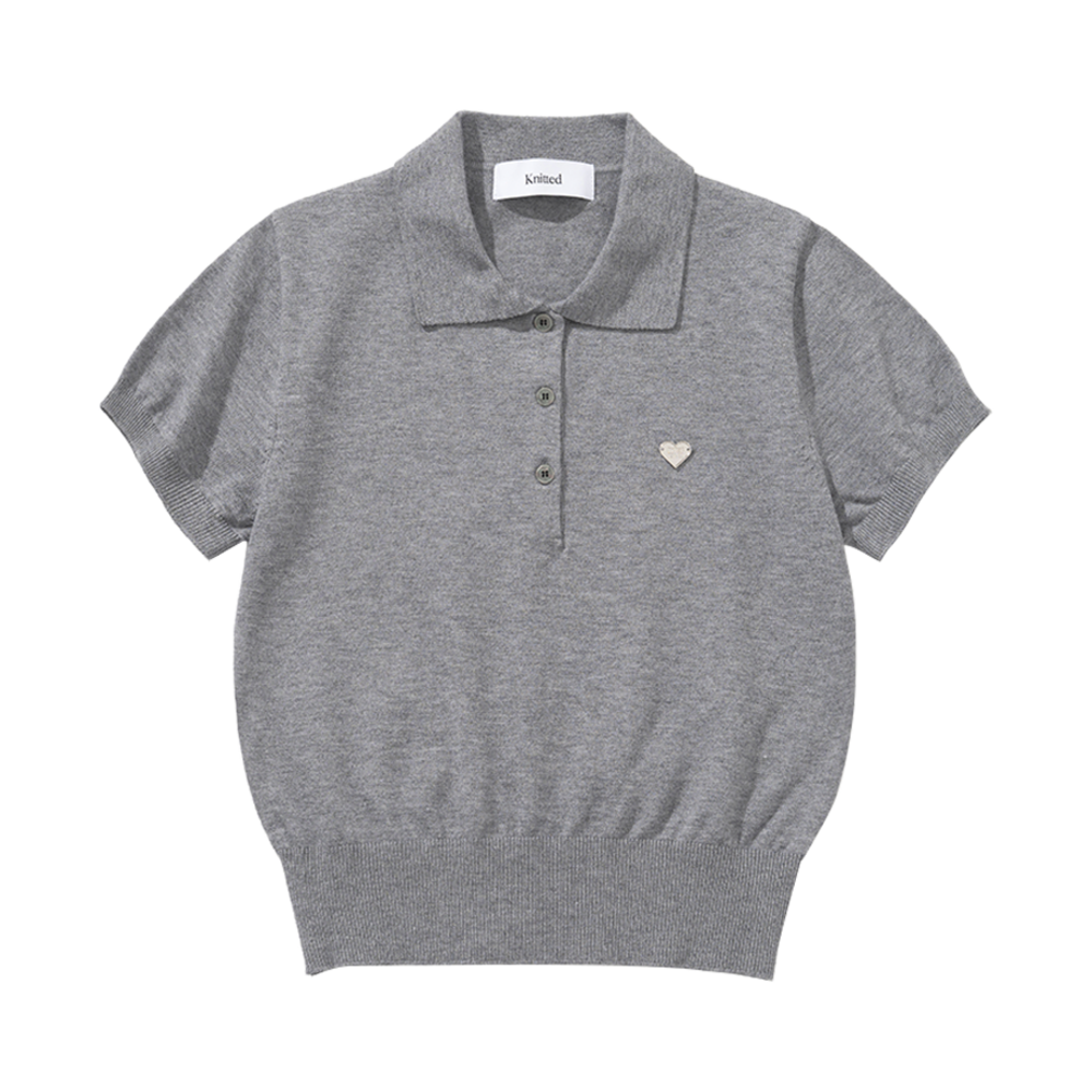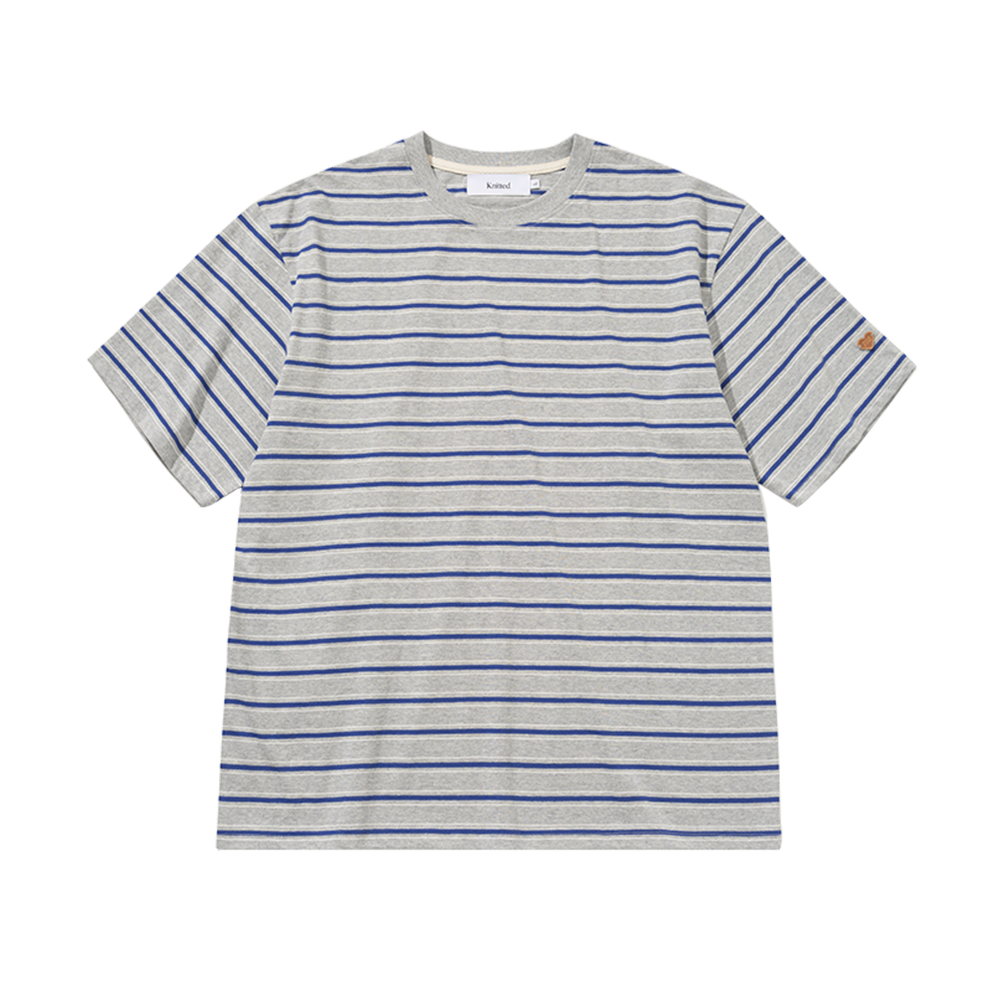 니티드 스트라이프 레더 하트 티셔츠 그레이