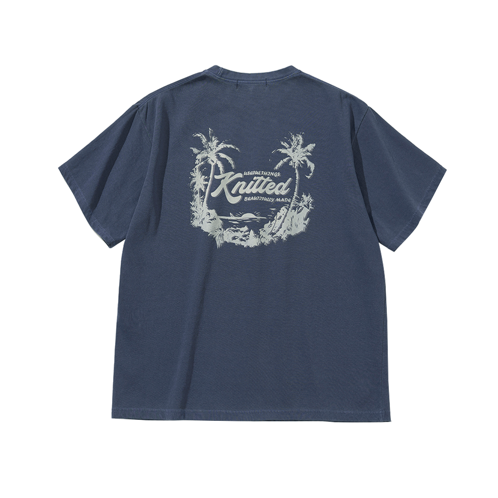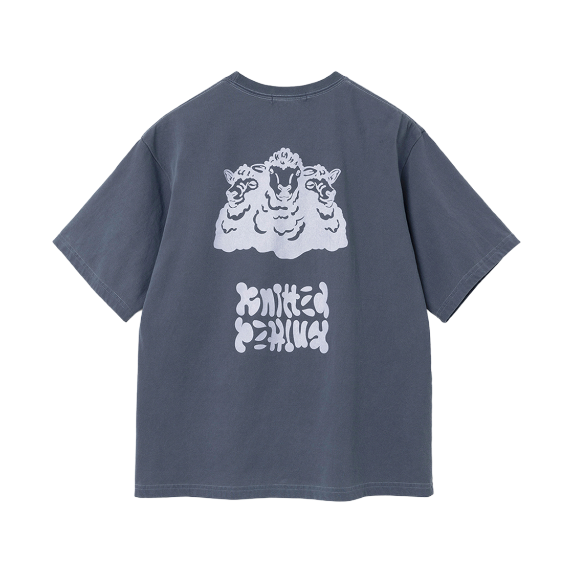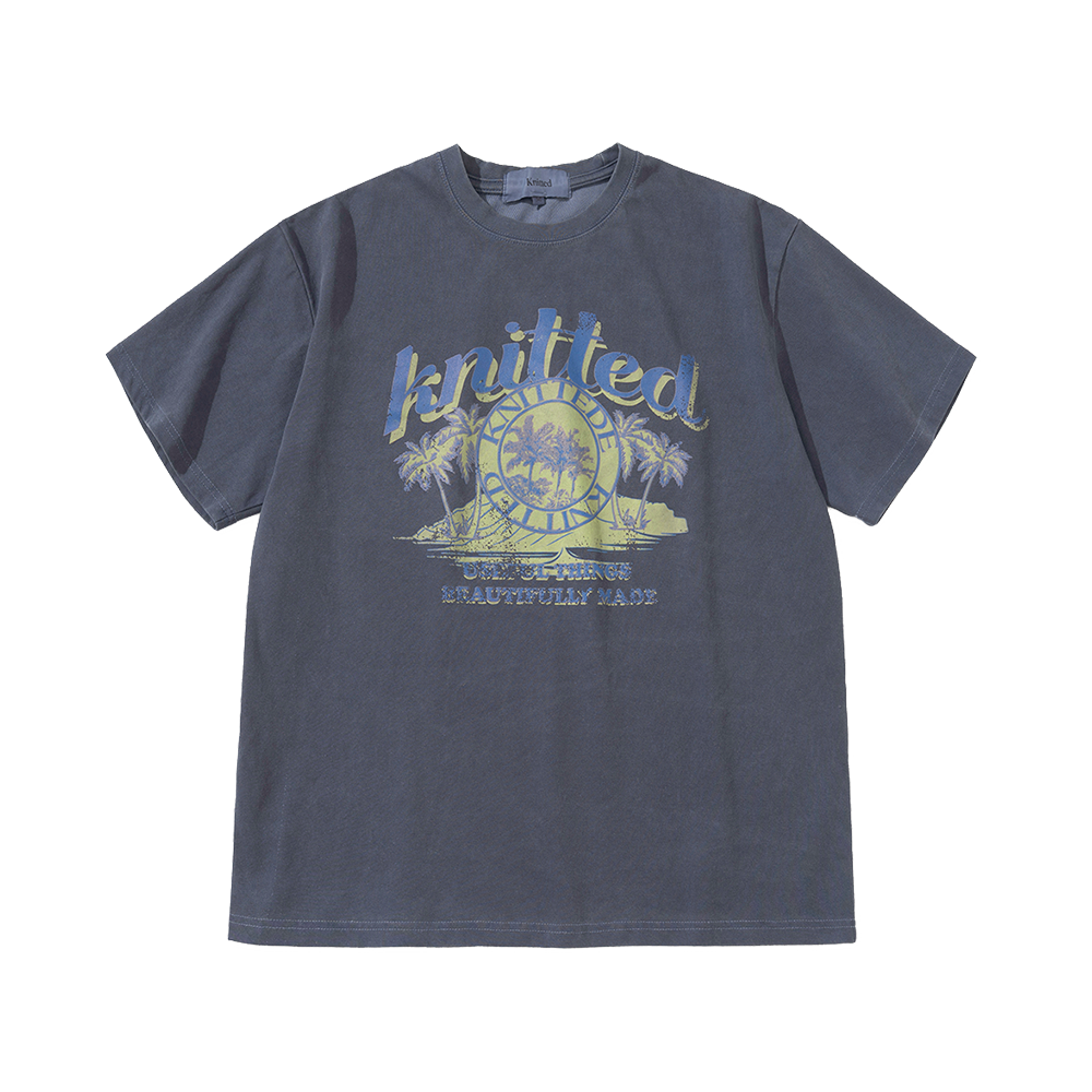 니티드 피그먼트 쉽 그래픽 티셔츠 워싱블루