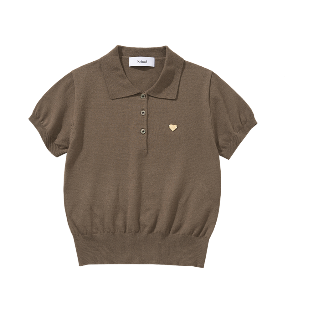 니티드 쿨에버 헨리넥 반팔 니트 브라운