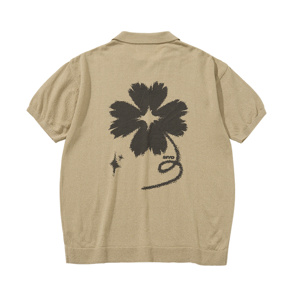 니티드 X QWER시연 쿨 썸머 오픈카라 클로버 니트 베이지