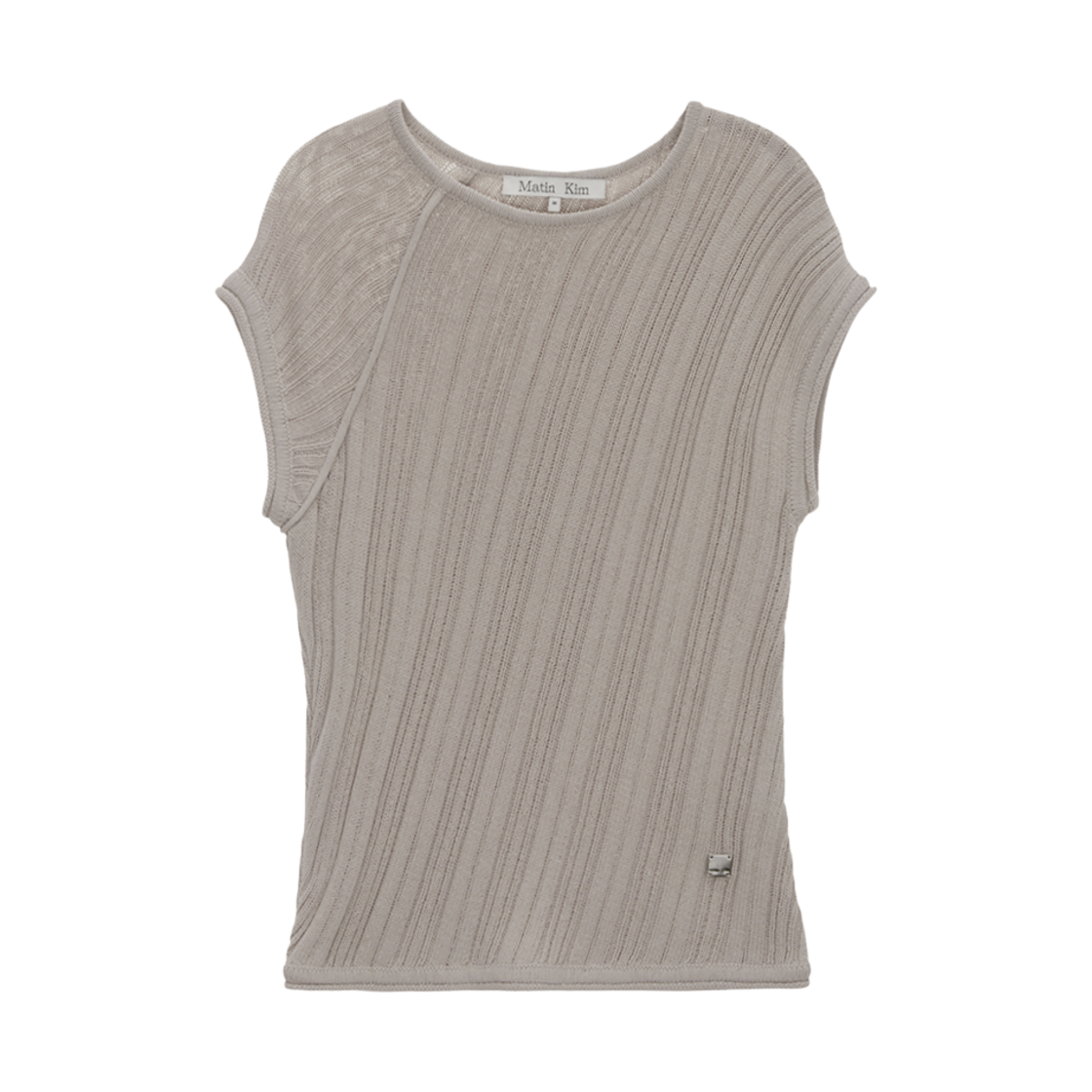 (W) 마뗑킴 다이애그널 텍스쳐 하프 슬리브 니트 탑 베이지