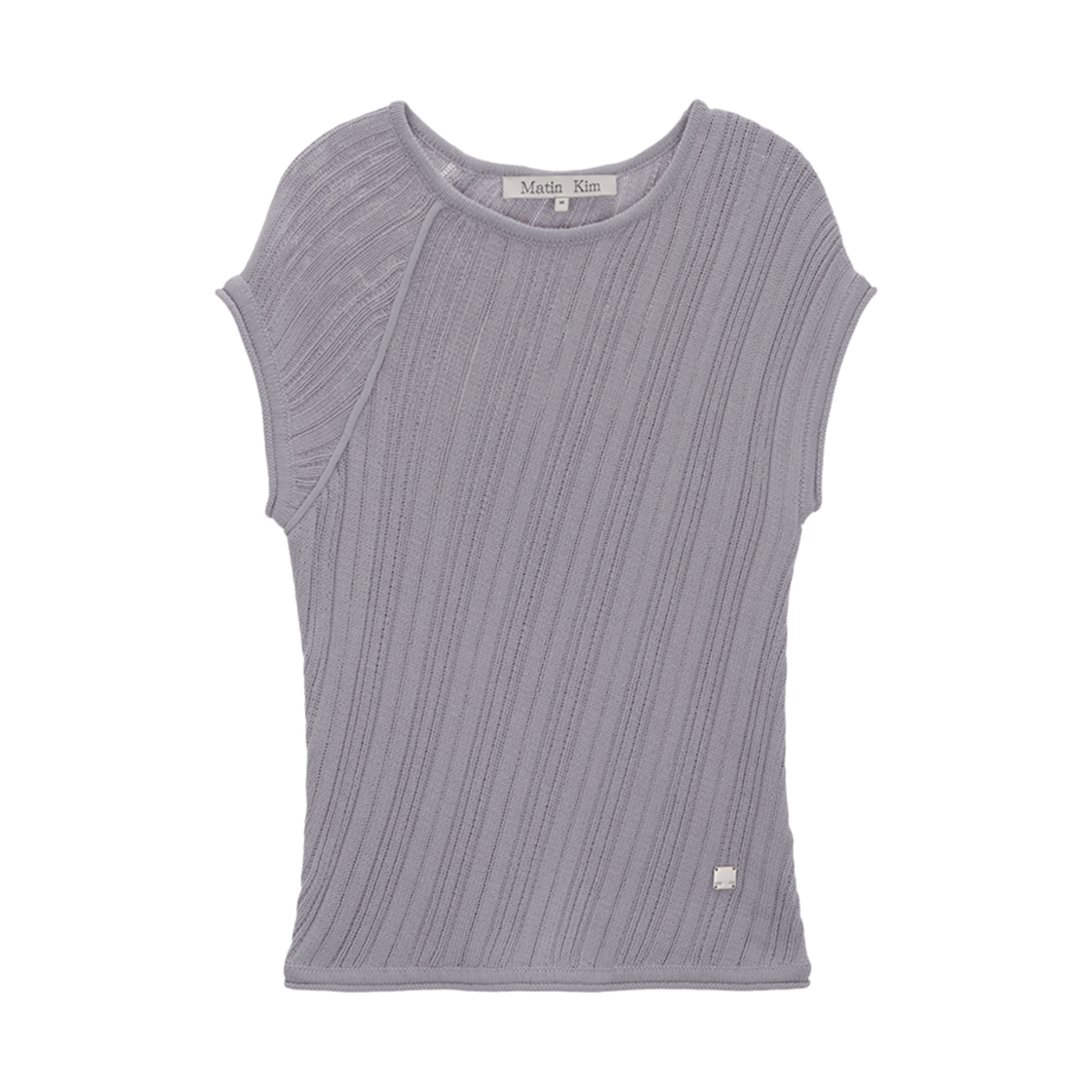 (W) 마뗑킴 다이애그널 텍스쳐 하프 슬리브 니트 탑 라일락
