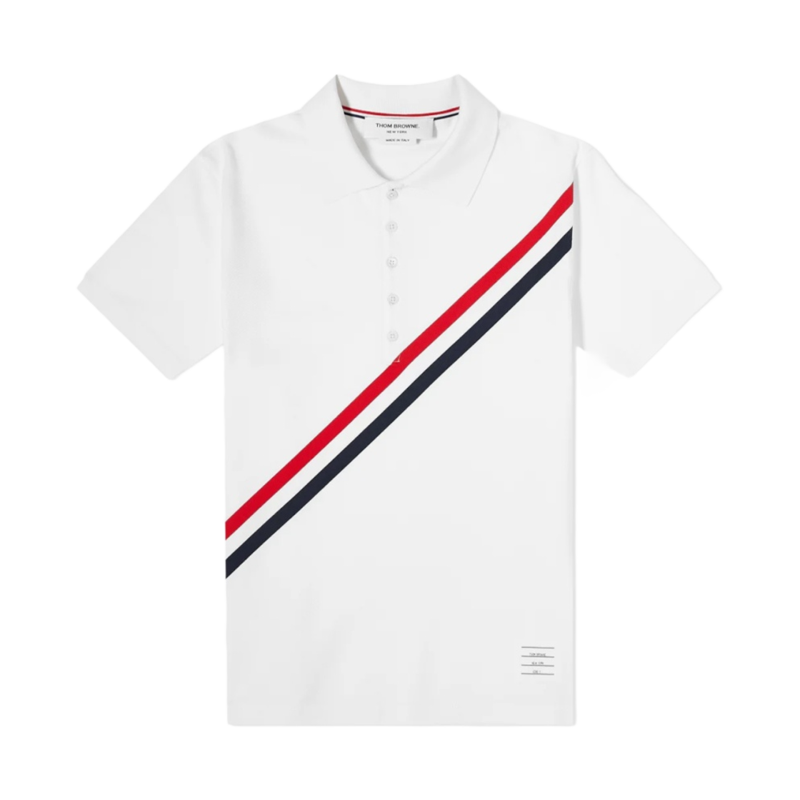 톰브라운 다이애그널 스트라이프 숏슬리브 폴로 화이트
