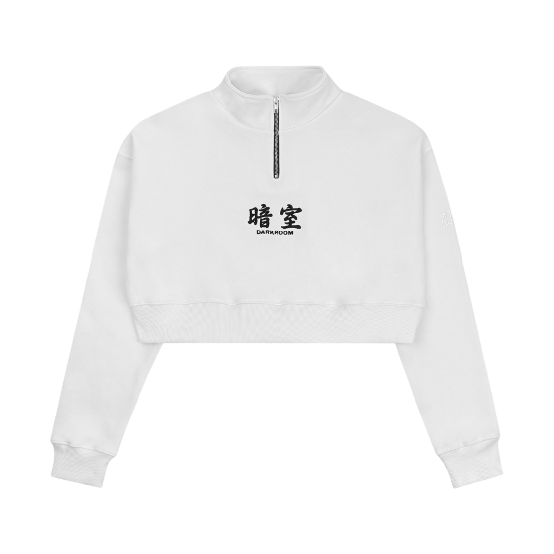 (W) 다크룸 스튜디오 크롭 쿼터 집업 스웨트셔츠 화이트