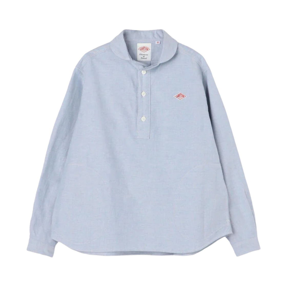 (W) 단톤 플레인 옥스포드 라운드 칼라 풀오버 셔츠 블루