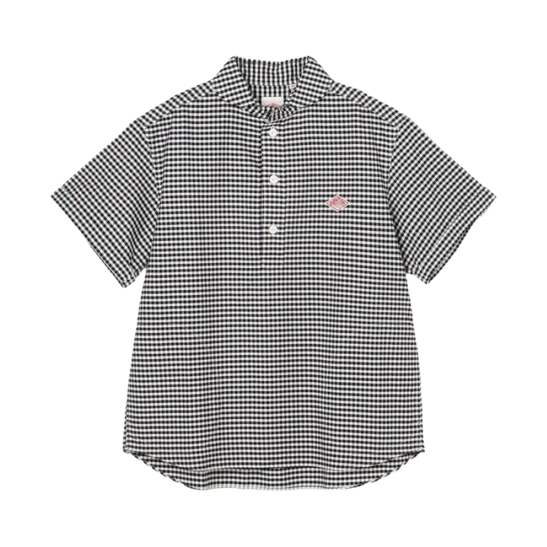 단톤 옥스포드 라운드 칼라 풀오버 숏슬리브 셔츠 블랙 깅엄