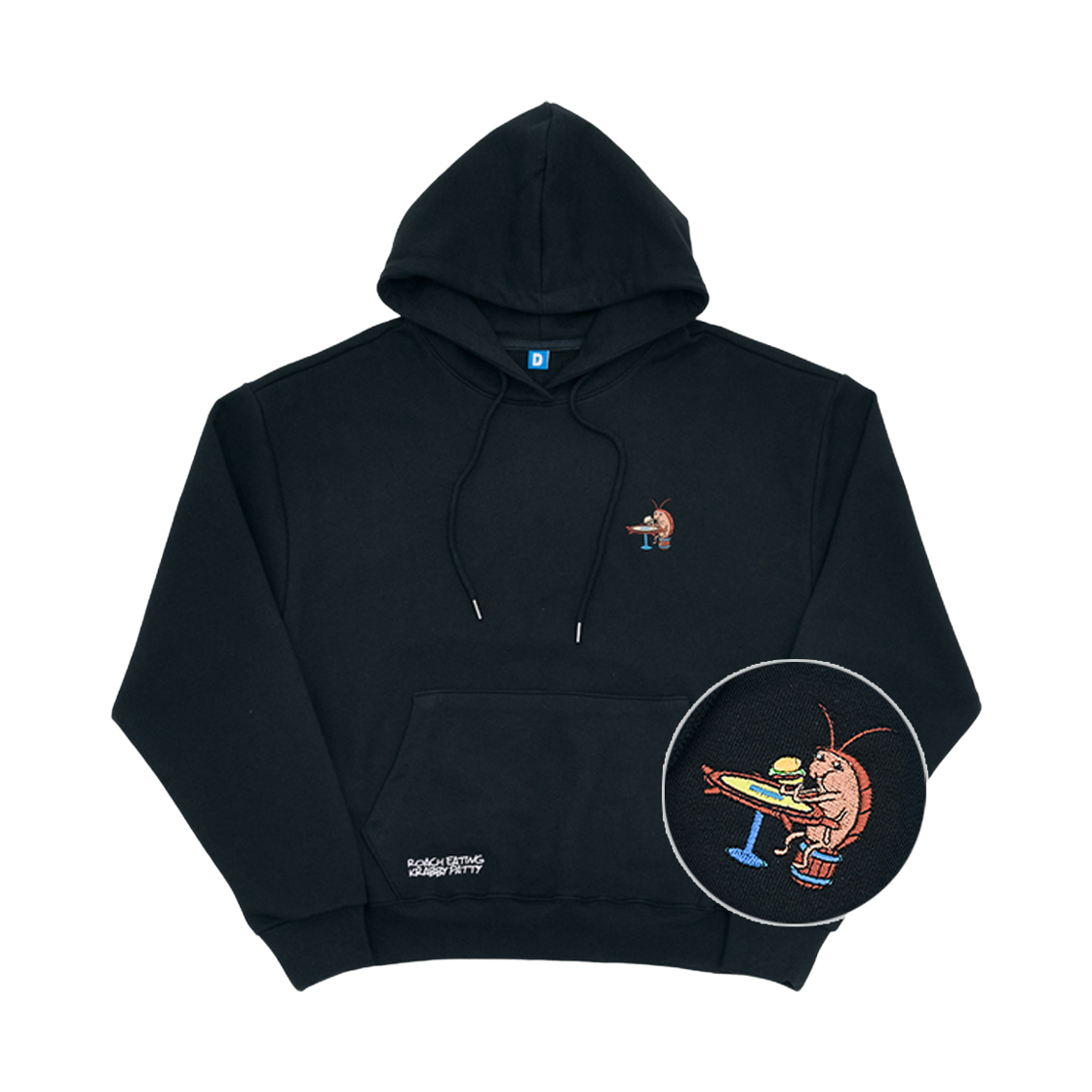 댄꼼마 x 스폰지밥 게살버거 먹는 바선생님 자수 후드티셔츠