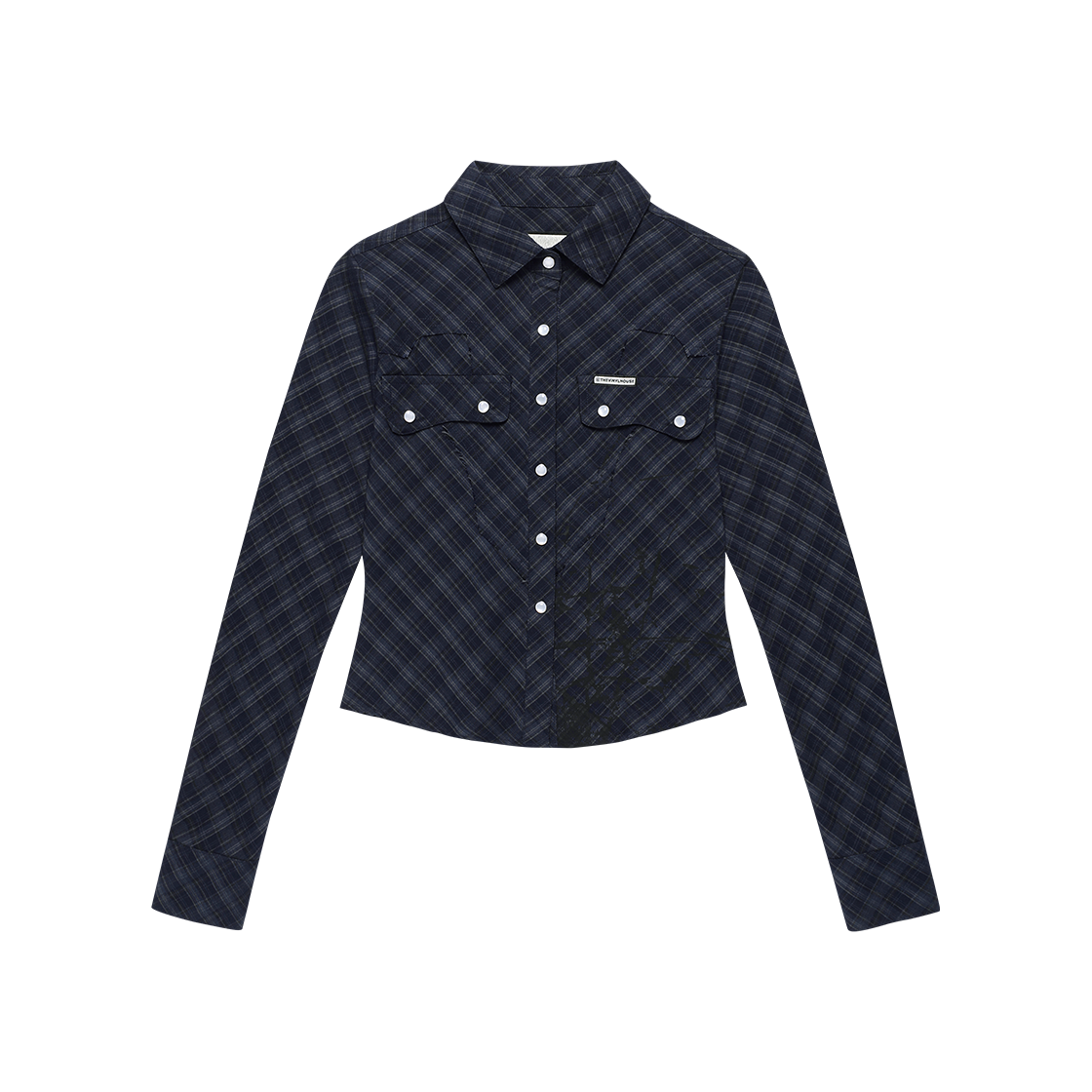 더바이닐하우스 페인팅 크롭 체크 셔츠 네이비