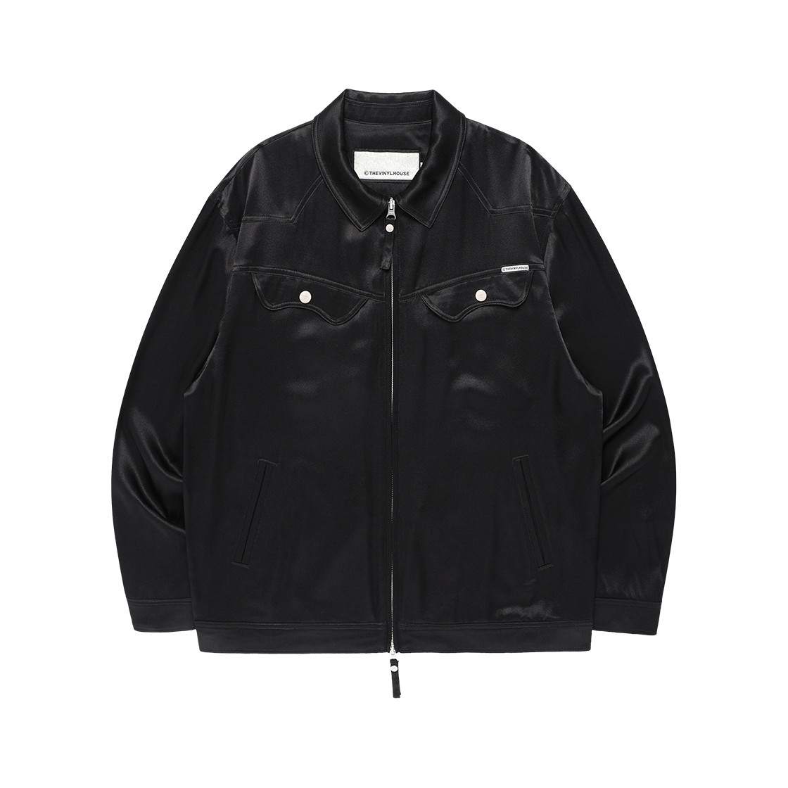 더바이닐하우스 새틴 카라 싱글 자켓 블랙